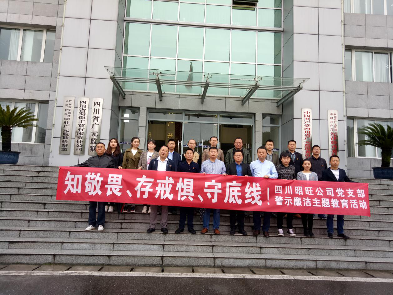 為進(jìn)一步推進(jìn)反腐倡廉建設(shè),提高黨員干部的廉潔自律意識(shí),5月7日上午,四川昭旺公司黨支部組織黨員干部及全體職工到四川省廣元監(jiān)獄開(kāi)展以“知敬畏、存戒懼、守底線”為主題的警示教育活動(dòng)。
